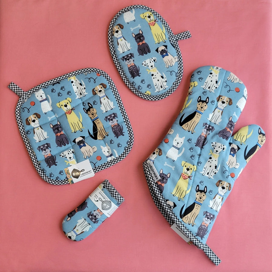 Spice up your kitchen with these charming oven mitts by Collisionware, all handmade in their Portland, Oregon studio. Each piece is a burst of color and whimsy, sure to bring joy to your cooking experience. Collisionware products are made to last for many meals and washings. We have lots more designs in store for you to choose from!