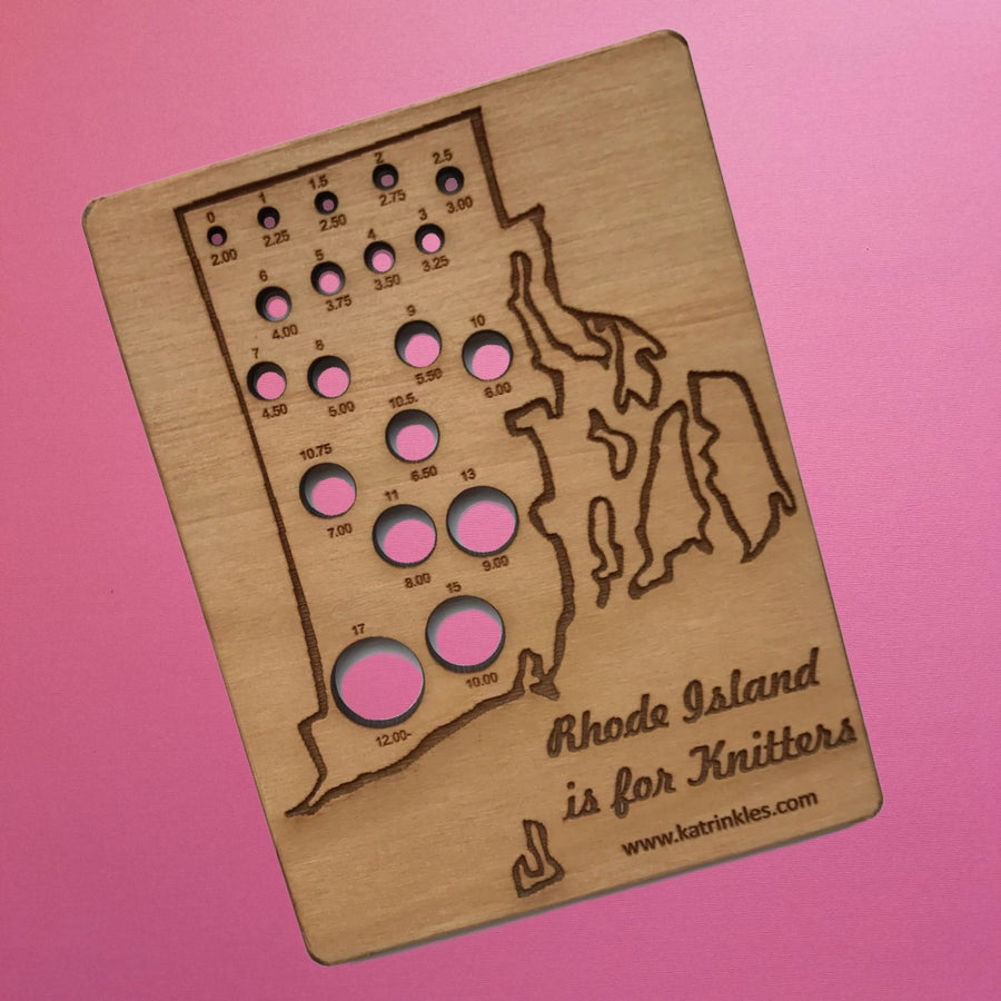 Lasercut wooden knitting needle gauge by Katy Westcott of Katrinkles—the perfect companion for every knitter's toolkit. This beautifully crafted tool features precision-cut holes that make identifying needle sizes quick and effortless, whether you're organizing your stash or double-checking mid-project. The smooth wooden construction feels lovely in your hands and adds a touch of artisan charm to your crafting space. Say goodbye to guessing games and hello to knitting confidence. A must-have for anyone serious about their needlework.