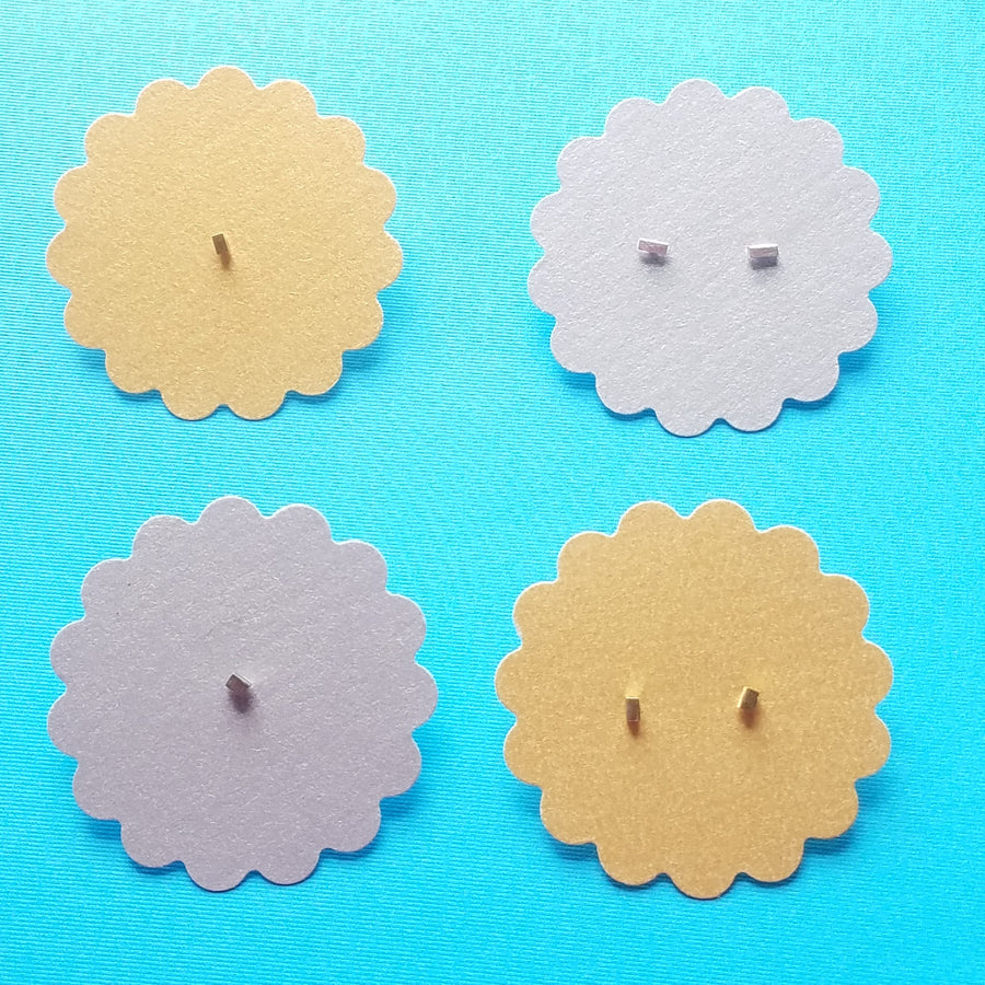 All earrings above average about 2.5 inches by 1 1/4 inches. Some designs, like the snake and bat wings, are smaller than others. The smaller designs average a little less in width, but are still just as easy to wear!